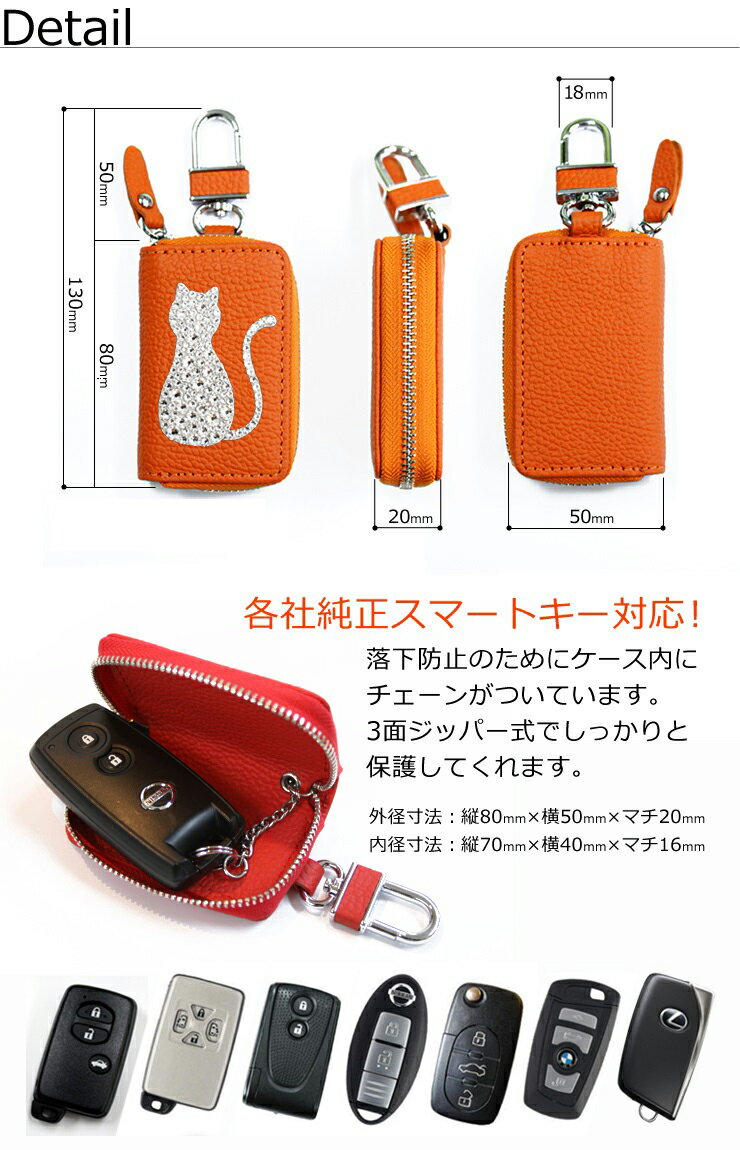 ストーンカラーが選べる デザイン スワロデコ スマートキーケース(全12色)キャット スワロ デコ 本革 レザー かわいい おしゃれ レディース スマートキーケース スマートキーカバー キーケース猫 ネコ ブランド オーダー【AWESOME/オーサム】