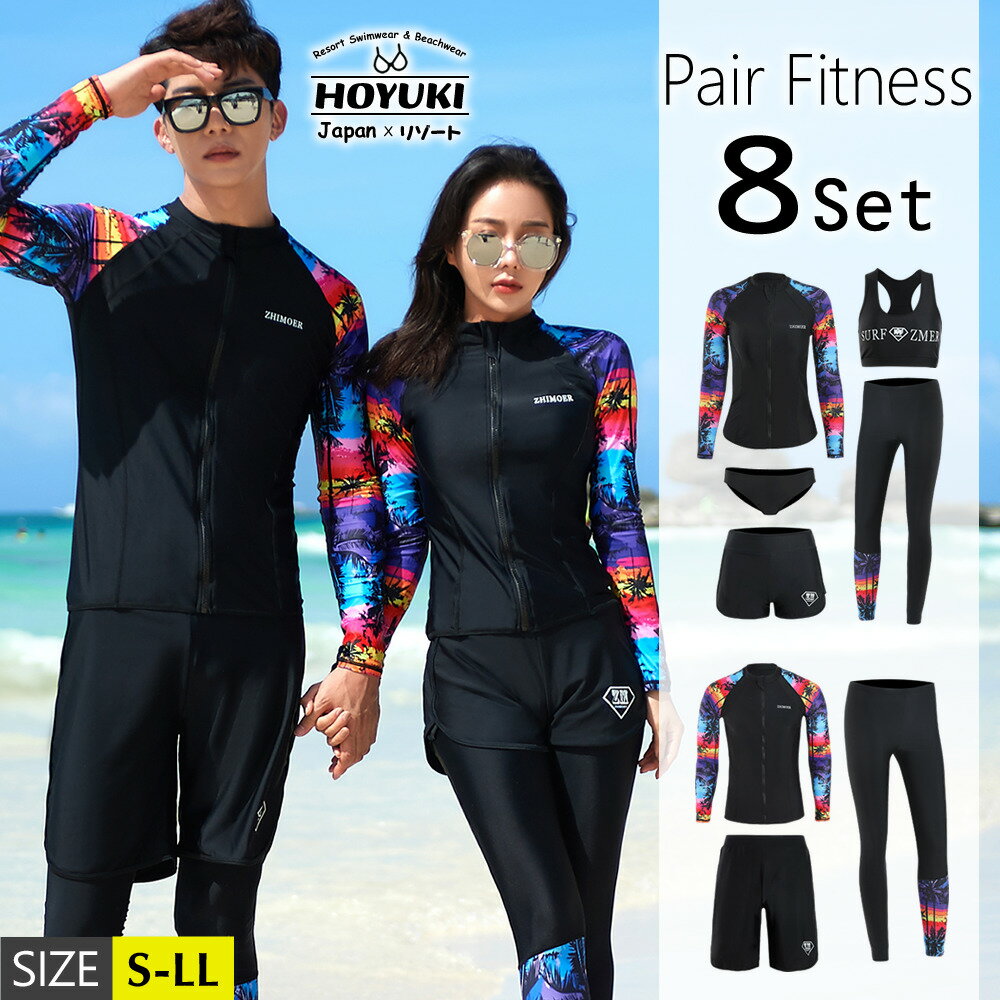 ペア水着 カップル 水着 ペアルック 日焼け防止 レディース メンズ フィットネス水着 高品質 ウェットスーツ 体型カバー 上下セット 長袖 ラッシュガード おしゃれ レギンスパンツ サーフィン セット 美脚 速乾 ウェットスーツ 無地 運動用 大きいサイズ
